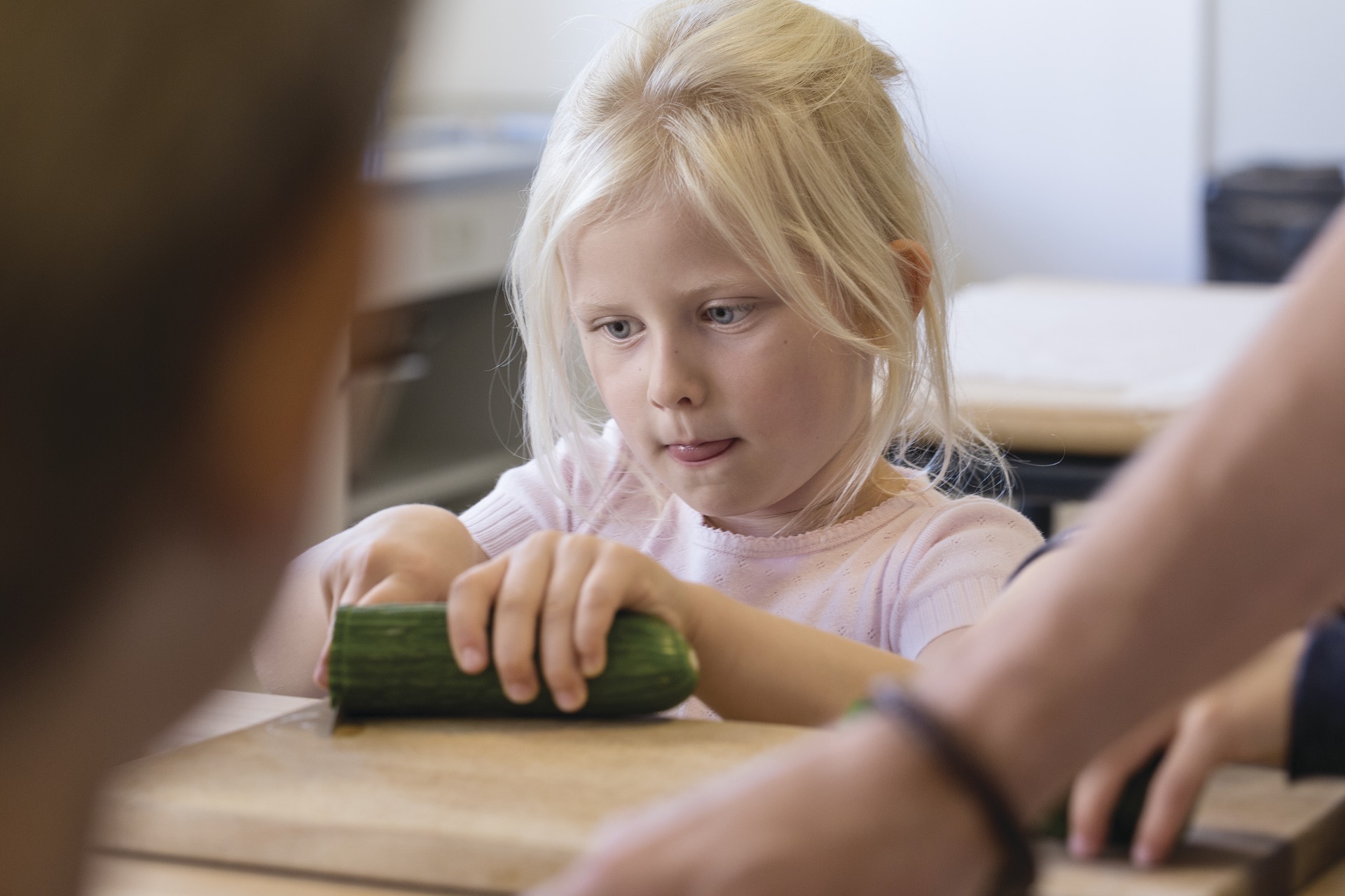 Når et barn er med til at lave maden, stimuleres nysgerrigheden over for nye madvarer og lysten til at udfordre egne smagsgrænser.