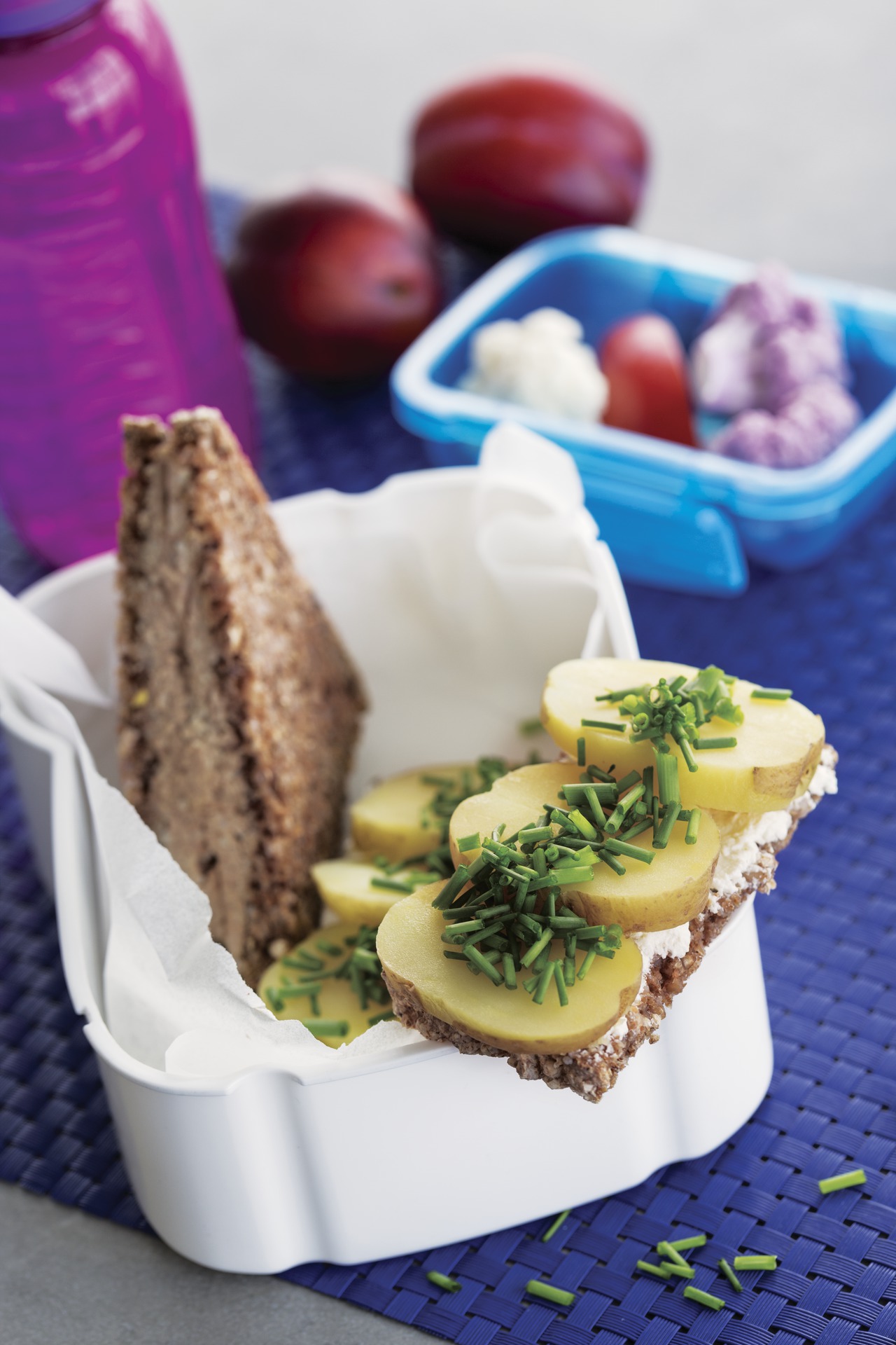 Sørg endelig for mættende pausemad til de lange dage. Både en formiddagshaps og lidt til de sene eftermiddage – for eksempel fuldkornsboller bagt med tørret frugt plus noget frugt eller gnavegrønt. Hvis din barn har fået en god morgenmad, kan mellemmåltiderne godt være domineret af frugt og knasegrønt. Det er både friskt, lækkert og sundt. Det tager tid at gumle, men det er lettere at gå med en gulerod eller et æble i hånden end med en sandwich, og så lugter frugt altid godt og indbydende. Pak pausemaden for sig, så den er nem at få fat i.