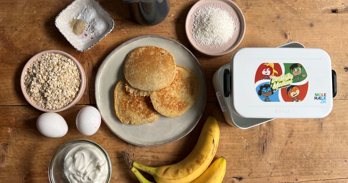 Bland alle ingredienserne sammen i en stor skål og blend det med en stavblender. Steg dine pandekager på en pande ved middel til middelhøj varme med lidt smør på, til de bliver gyldenbrune på begge sider. Afkøl og pak i madpakken!
