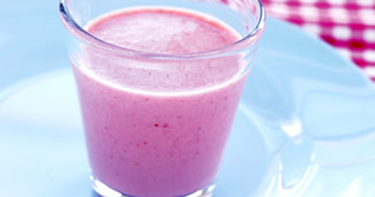 Blend alle ingredienserne. Hvis jordbærrene er friske, kan man tilsætte en isterning.