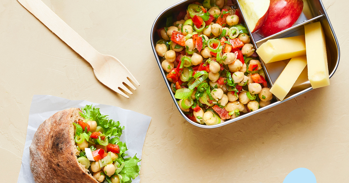 Salaten kan spises alene, men kan også bruges som fyld i pitabrød.