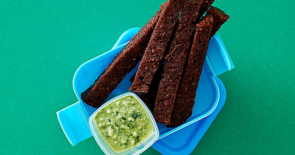 Skær rugbrød i tykke firkanter 1x1 cm og steg dem på en pande i lidt olie til de er sprøde. Opbevar dem i en dåse til brug.